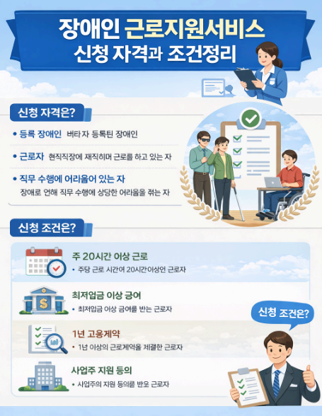 | 장애인 근로지원서비스 신청 자격과 조건 정리 (0) | 2025.12.23 |