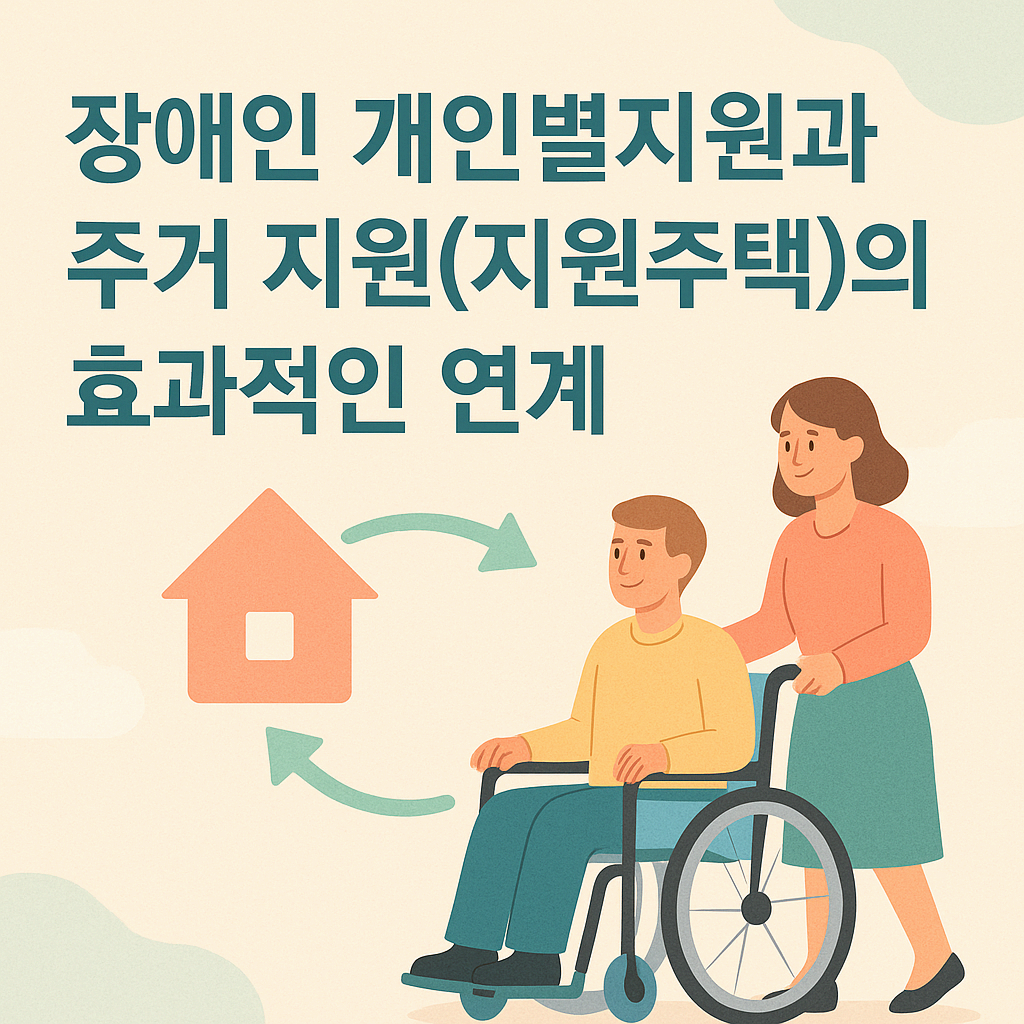 – 지역사회에서의 ‘진짜 삶’을 가능하게 하는 핵심 전략 –1. 들어가며자립생활을 실현하기 위해 가장 중요한 요소 중 하나는 주거 안정입니다. 어떤 서비스를 받든, 사람이 ‘살 곳’이 없으면 자립은 이루어질 수 없습니다.최근 한국에서는 지원주택(지원주거, Supportive Housing)이 확대되면서 장애인의 지역사회 정착 가능성이 높아지고 있습니다.하지만 주거 지원 단독으로는 충분하지 않습니다. 장애인 개인별지원과 결합될 때 비로소 독립적인 삶이 안정적으로 유지됩니다.이 글에서는 개인별지원과 지원주택이 왜 서로 반드시 연결되어야 하는지, 그리고 어떻게 연결해야 효과가 극대화되는지 구체적으로 설명합니다.2. 장애인 개인별지원이란?1. 기본 개념장애인 개인별지원은 장애인의 욕구·강점·환경·목표를 기반으로..